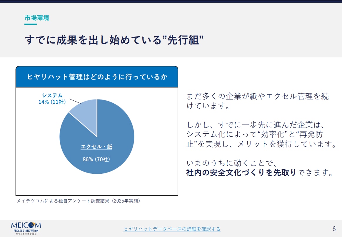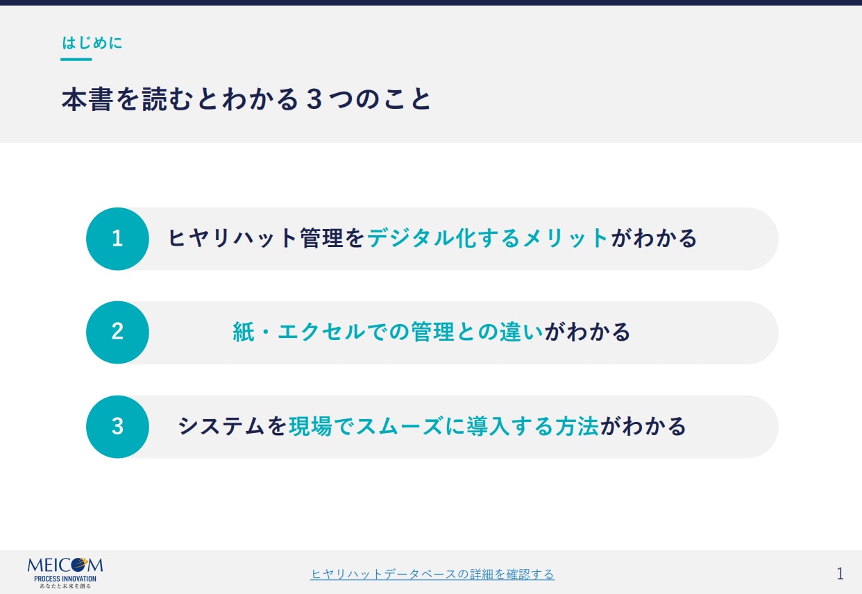 ①ヒヤリハット管理をデジタル化するメリットがわかる ②紙・エクセルでの管理との違いがわかる ③システム導入による具体的な変化や導入成功のヒントがわかる