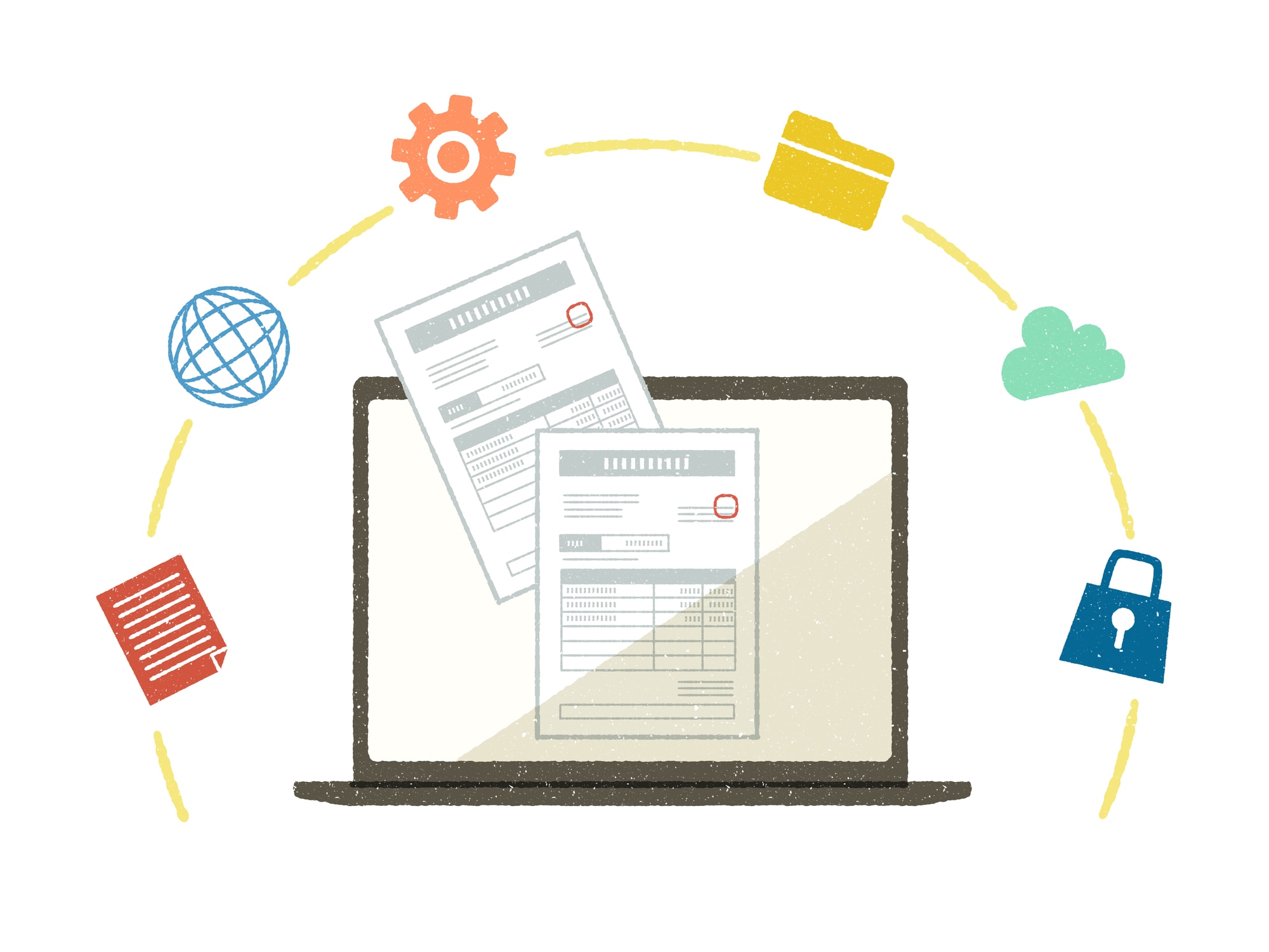 「紙帳票の電子化が進まない」という悩みを解決するため、「楽々道中」は法令遵守に関わる帳票作成のプロセスを徹底的に自動化・電子化します。