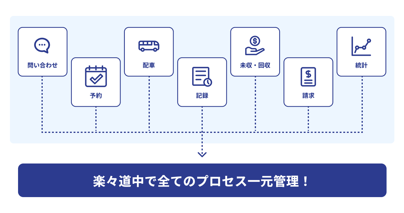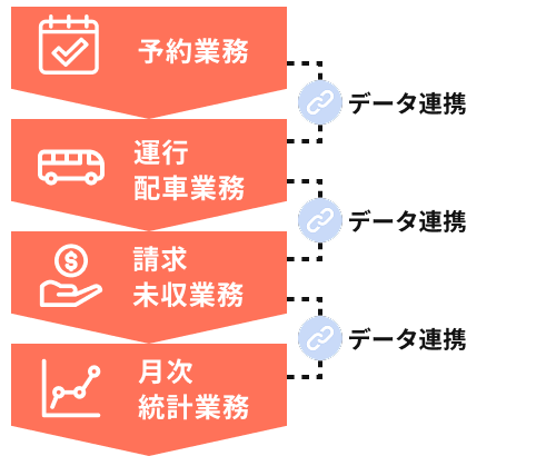 転記によるロスをなくし、確実な情報を運行・未収の業務につなげるとともに、情報の一元管理ができます。